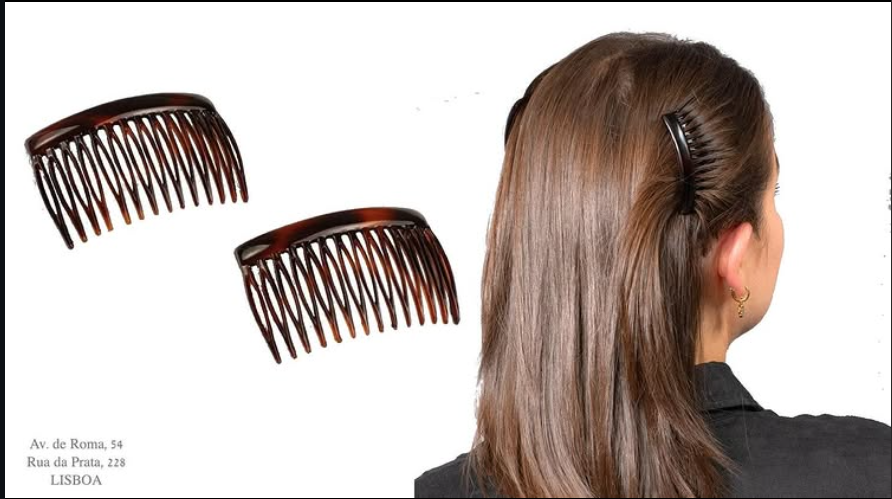 Travessa de cabelo castanha, ideal para prender e estilizar cabelos longos.